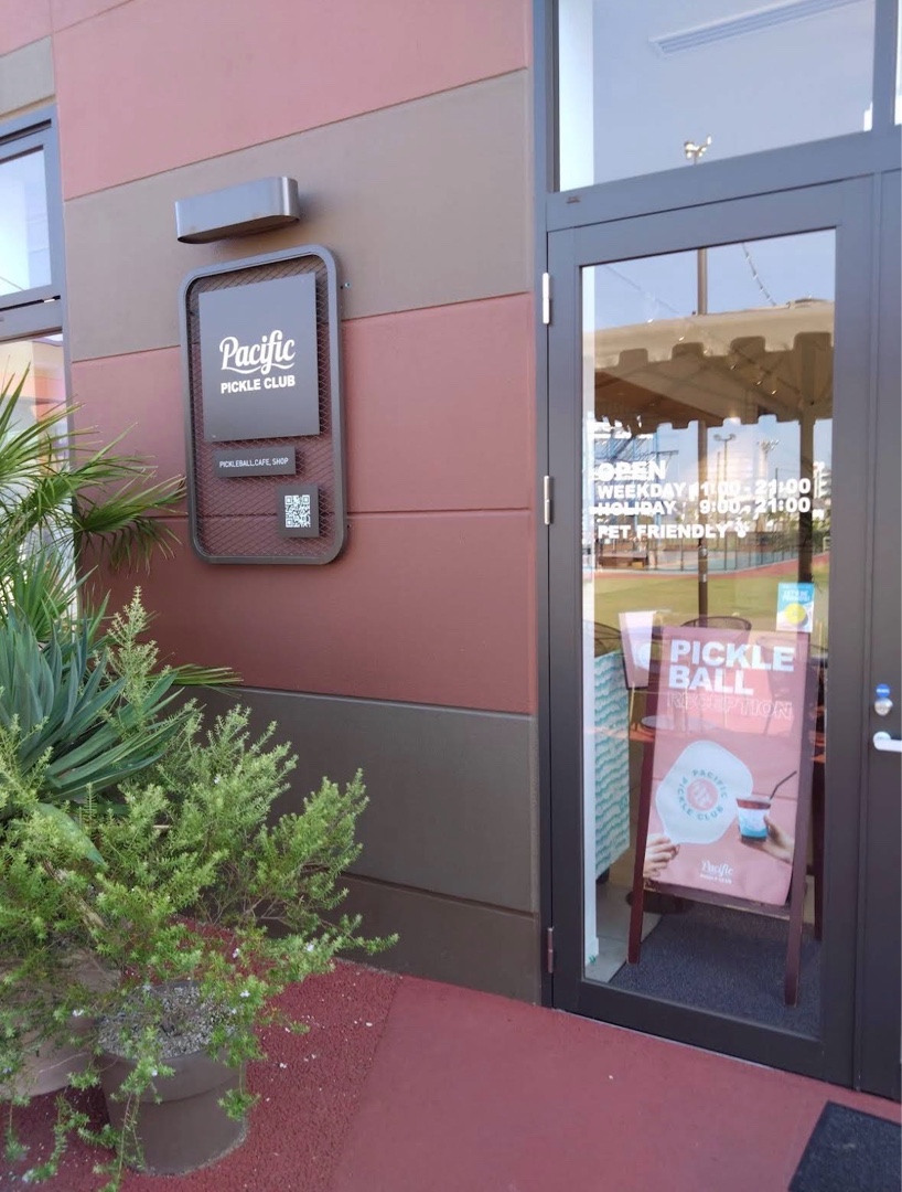 • Hours: Mon–Fri 9:00 AM – 9:00 PM / Sat–Sun 8:00 AM – 9:00 PM • Website: https://pacificpickleclub.com • Court rental: ¥6,000–¥10,000/hr (up to 8 people per court) • Phone: +81 3-5579-6166 • Cashless payment only. Open play every Thursday 19:00–21:00 for intermediate players (~DUPR 2.5–3.5). Entry-level trial sessions and pro coaching available. On-site Hawaiian-style café and apparel shop. Showers and lockers available for extra fee. Indoor sports shoes required on court. No convenience stores nearby — bring your own drinks.